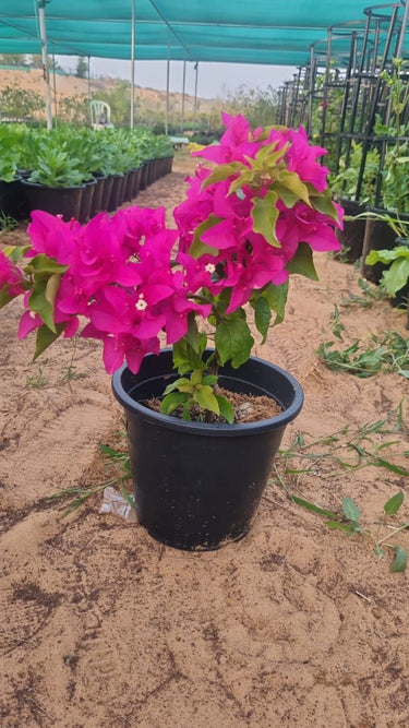 Bougainvillea in Nursery Pot can be trained as a climber, shaped into a bush, or supported along fences and walls to create a colorful natural backdrop. It is widely used in villas, hotels, restaurants, and landscape designs to create eye-catching outdoor displays.